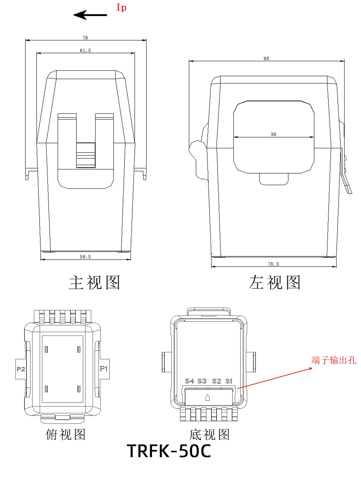 可根据主回路所用的电缆规格有多种穿芯孔径相对应