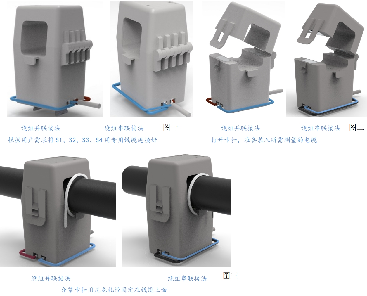 2.打开互感器防护盖,将互感器输出线连接好并与测量设备的端口相连接,确保线路闭环。(见图一)
