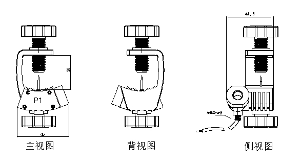 TRKLC-30J开合式穿刺取电夹,主要用于低压0.66/0.72kV输电电缆,方便在带电情况下安装及拆除;带电穿刺电缆,通过引出线将相线电压信号引至监测电表。可直接固定在直径为5mm~30mm的线缆上